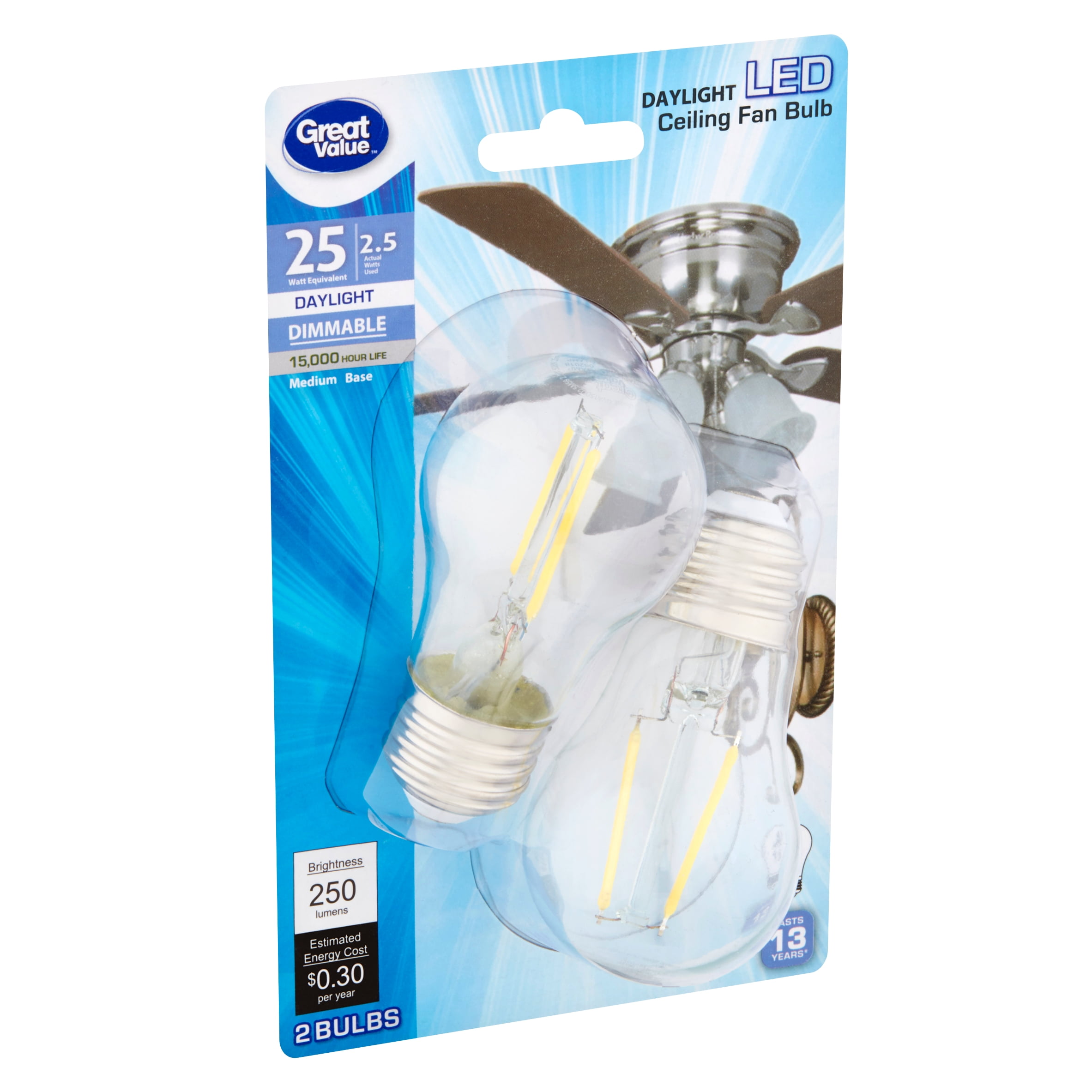 Easily bring light everywhere you need it with our convenient flashlights, work lights, and portable lighting. General electric 40w 2pk refresh daylight equivalent a15 ceiling fan frost bulb led hd. Is it the sole source of light in the entire room? Lights that will not shut off or turn on automatically during daylight hours most likely have a faulty photocell. Lighting led bulb candelabra bulbs daylight white ceiling. Though fan lights aren't the best place to install these light bulbs (because of the noise of the fan), it's still an option for those that want something off the wall for their home. Changing out small light bulb socket to accommodate full size light bulbs. Smart lights can be successfully used in most ceiling fans (assuming you can find bulbs that fit the smaller socket type), but if the ceiling fan acts as a dimmer then smart light bulbs probably might not work because the supplied power can vary up to 30%. Here are some other important factors to consider when buying ceiling fan lights. For instance, you will need to decide whether you would like to attach a fixture that has install light bulbs, glass shades, and pull chains, following the directions provided by the manufacturer. Home depot sells replacements as ceiling fan light bulbs. Different people need different things from their lighting, particularly in an office or study environment. Enjoy free shipping & browse our great selection of ceiling fans, ceiling fan blades, bathroom fans and more!
